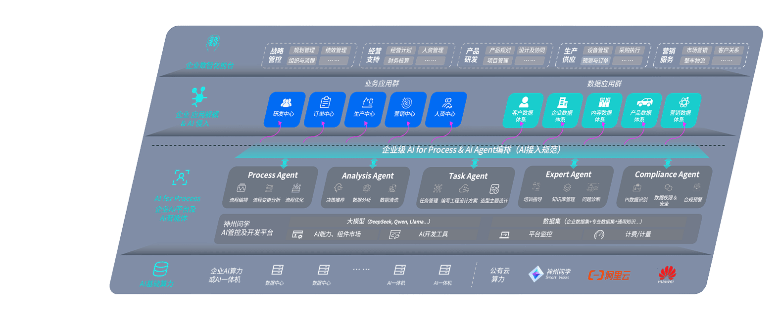 端到端的一站式AI工作空间深度融合了从企业战略规划到日常经营的全流程业务板块,,,,定向解决车企内部领域多、、部门多、、、链条长、、、、场景碎片化等难题,,,,支持车企快速构建以AI为核心的生产力写作体系,,,,实现任务执行与AI能力的无缝集成与交互