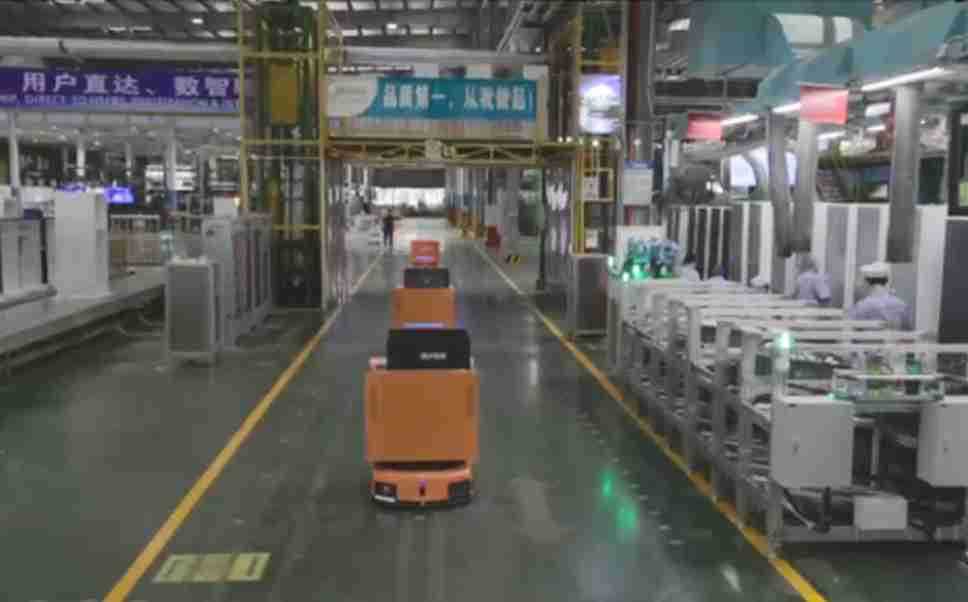 为车载冰箱物流配送打造的智能解决方案,,,包含产中物流通过潜伏举升AMR搬运至线边,,,,产后成品物流智能仓储,,流程包含产中物流智能齐套入库,,,线边安灯叫料AMR智能配送至线边,,,成品入库、、、、出库,,通过无人堆高车机器人,,,,智能仓储管理替代人工作业管理,,,实现更高存储、、、更高效率、、、更具柔性化的解决方案。。。